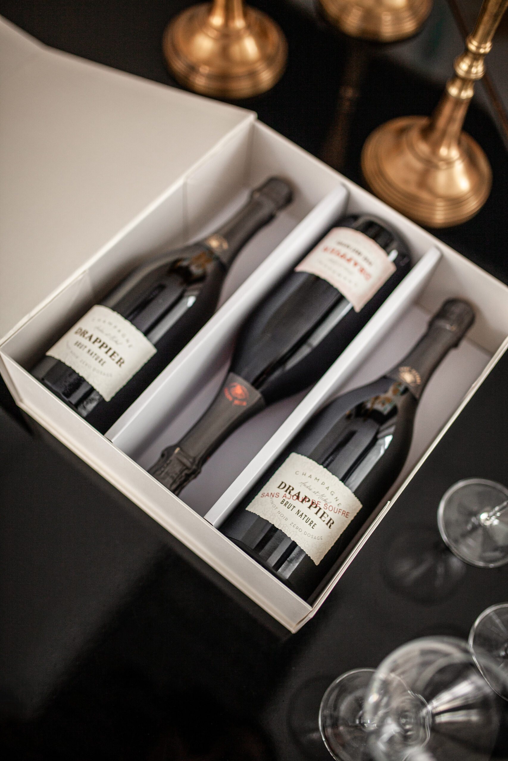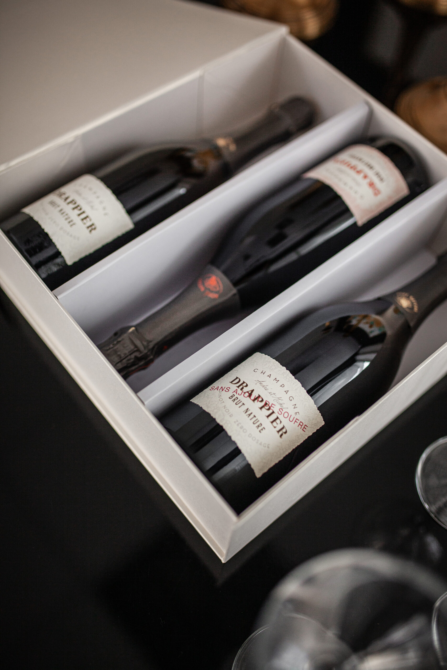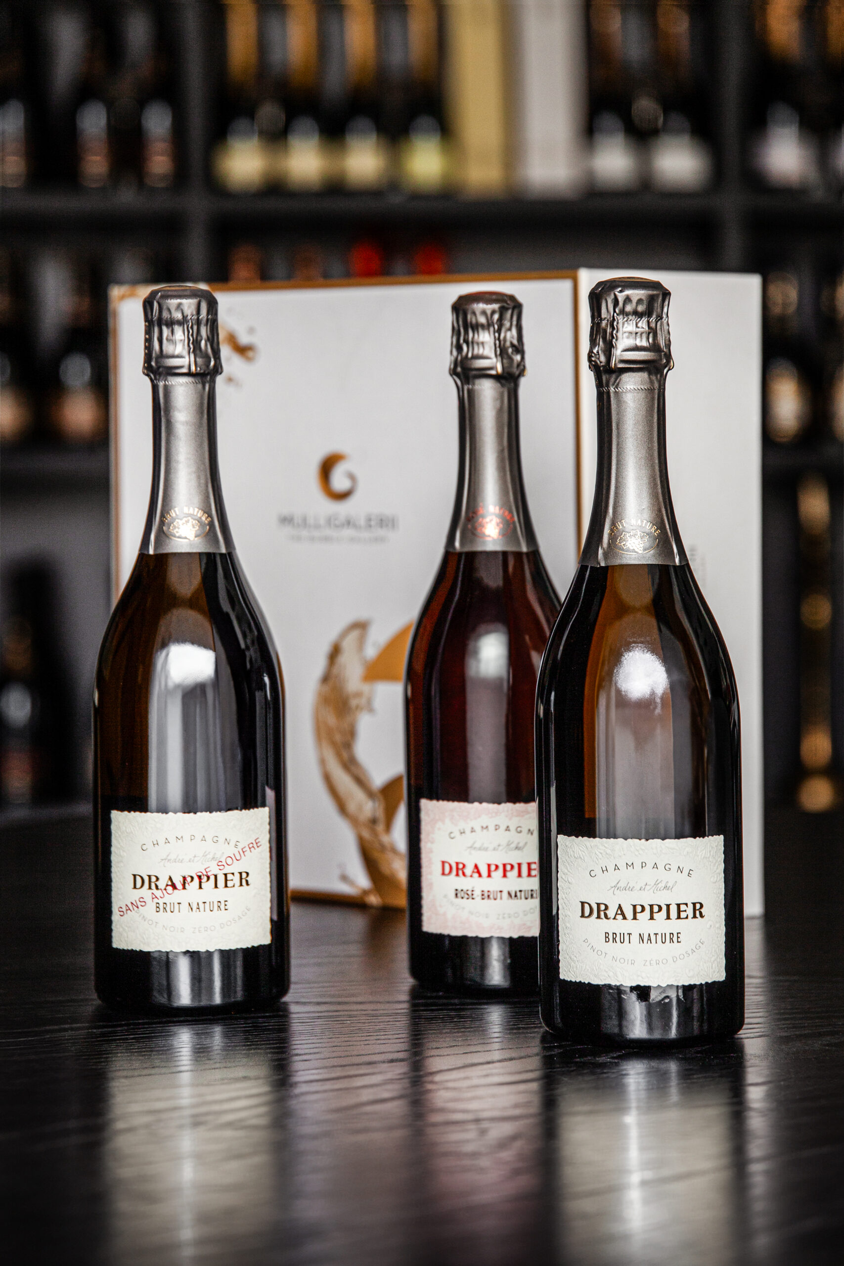 Mulligalerii luksuslik kinkekarp Brut Nature (Zero Dosage) šampanjadega Champagne Drappier valikust. Kinkekarp kaunites heledates ja kuldsetes toonides, sulgub magnetitega. Kinkekarbis kolm suurepärast jääksukrute vaba šampanjat Champagne Drappier’lt: Brut Nature (100% Pinot Noir), Rosé Brut Nature (100% Pinot Noir) ja Brut Nature Sans Ajout de Soufre (100% Pinot Noir, without sulfits!) Tõeline kevadvärskus ja imeline kvaliteet ootab just selles komplektis! Ja ei mingeid lisatud suhkruid! Asu või kohe šampanjadieedile!